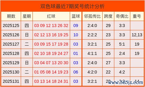 重号分析:在最近7期的奖号分析中,有4期开出过重号,本期臆测不开出重号。